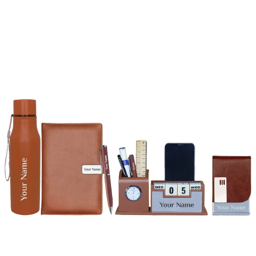 Customized pens, notebooks, diaries, and desk accessories.