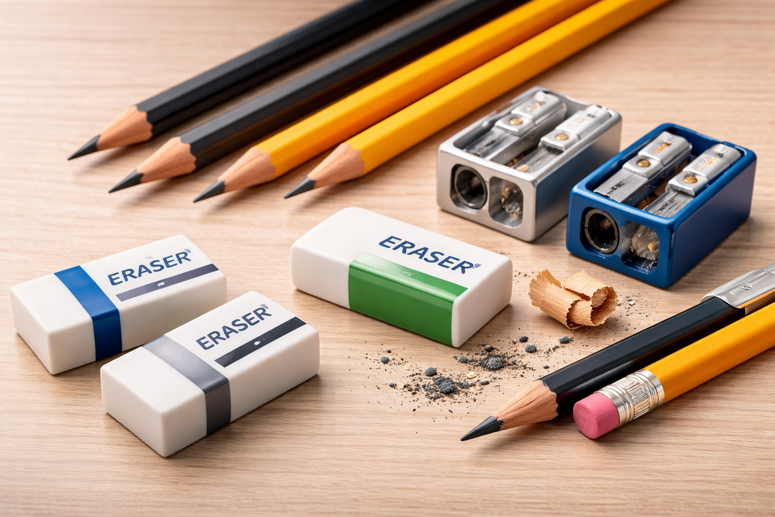 Pencils, Erasers & Sharpeners